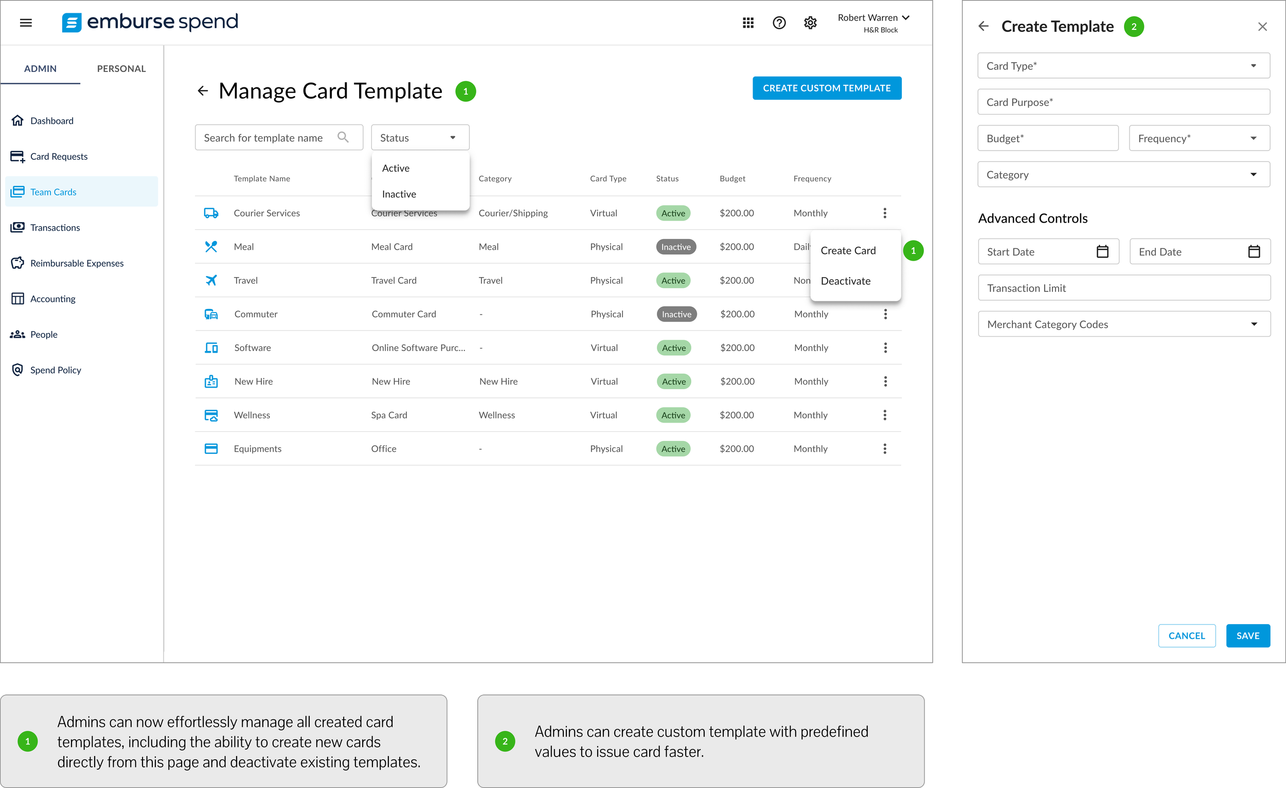 Implementing a feature enabling administrator to effortlessly order cards using predefined templates that included merchant restrictions, budgets, and other card details. This will eliminate the need for repetitive data entry for each card and significantly speeding up the process.